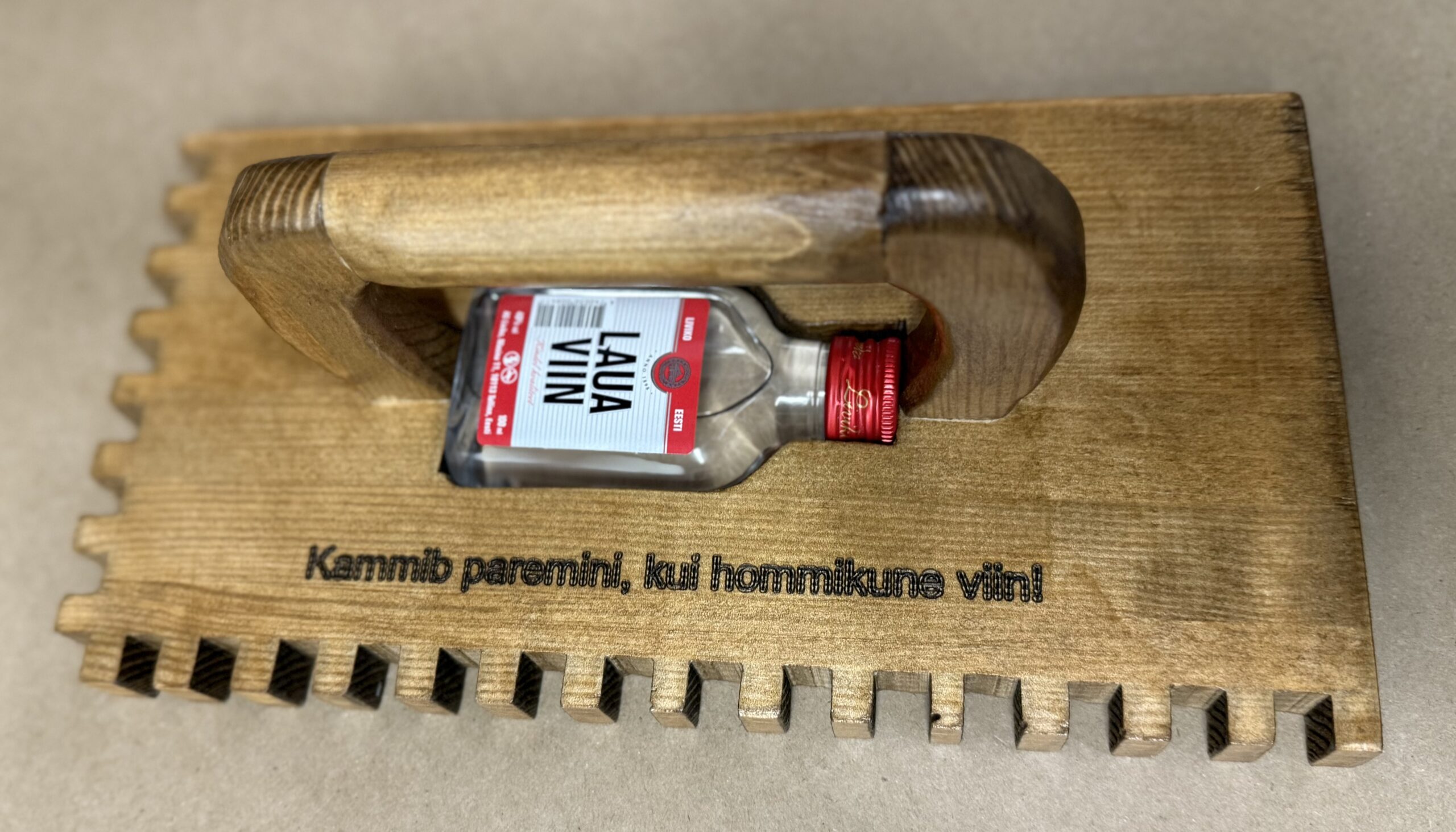 Tugev, puidust ja varustatud motivatsioonipudeliga, mis aitab isegi kõige kangemal liimil lahti lasta.