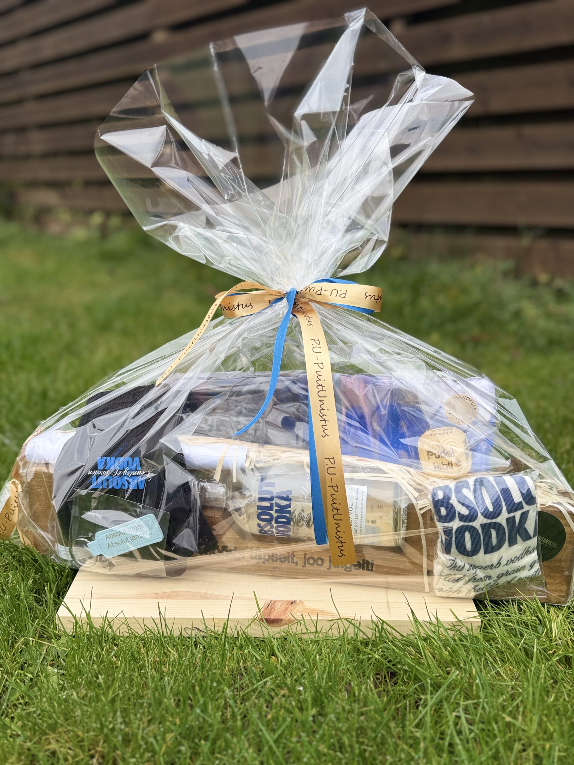 Promillikomplekt Absolute-eri sisaldab kõike, mida tõsine (aga rõõmsameelne) puhkehetk vajab – alates sõrmikutest, mis hoiavad käed soojas, kuni saunalinani, mis aitab pärast Absolute-taset veidi kainemaks kuivada.