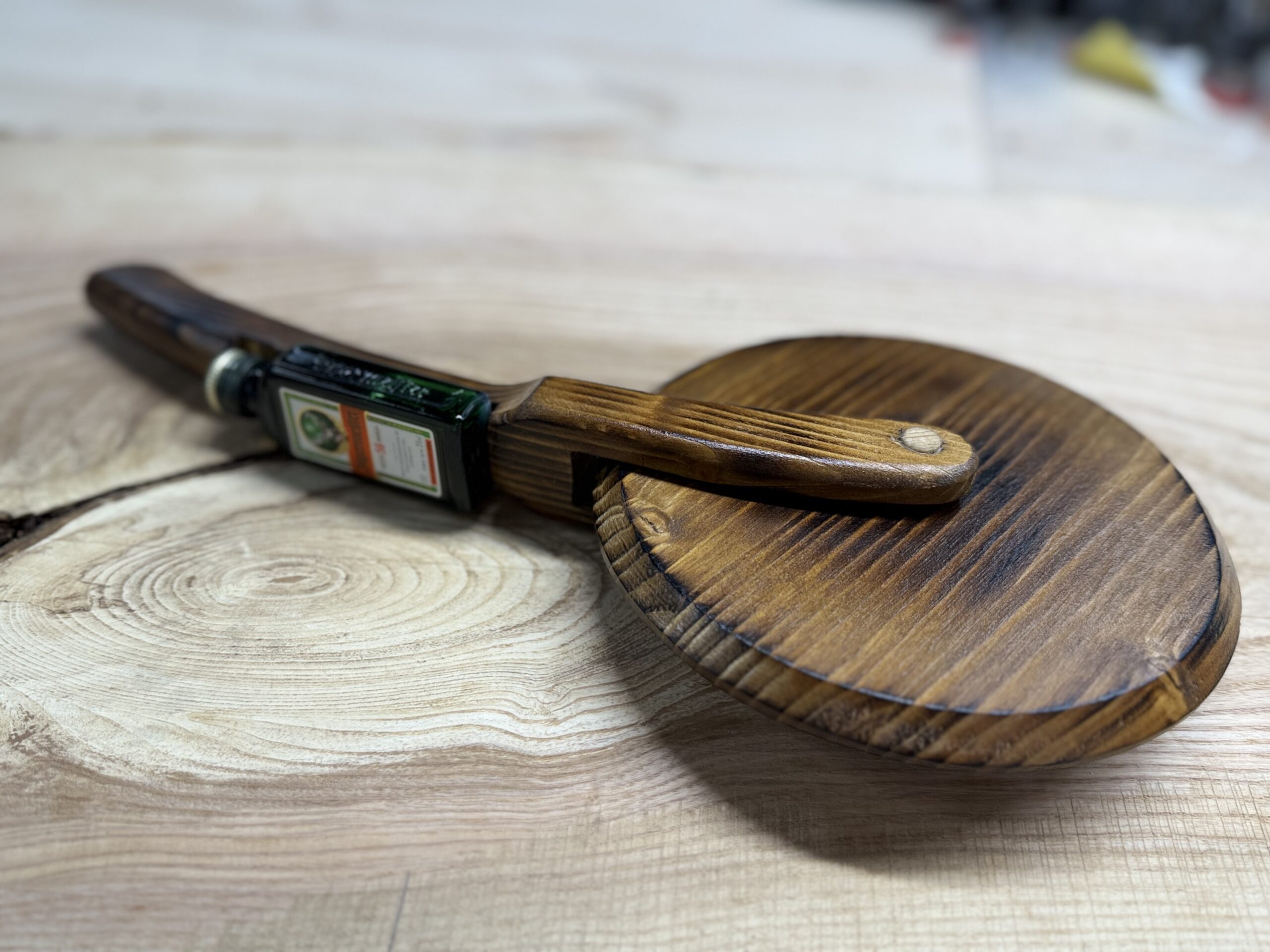 Kui tavaline pitsalõikur teeb lihtsalt tööd, siis Promillilõikur teeb tööd lõbusalt. Puidust käepidemega kaunitar, mille sisse on peidetud 5 cl kangemat, aitab sul lõigata pitsat sama kindlalt kui viimast pitsi peolauas.